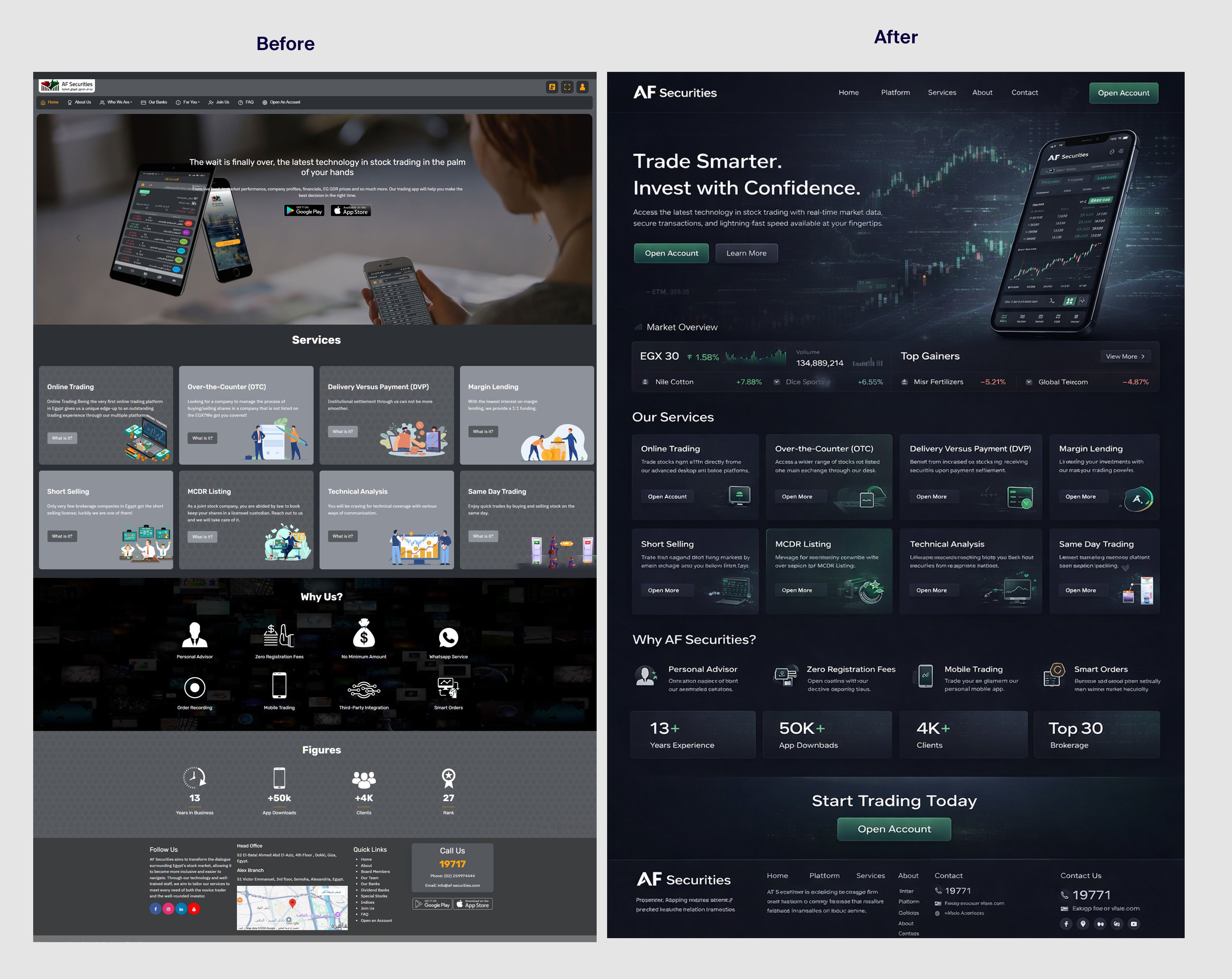 The legacy website successfully showcased AF Securities’ capabilities but failed to translate them into a clear, user-centered experience.